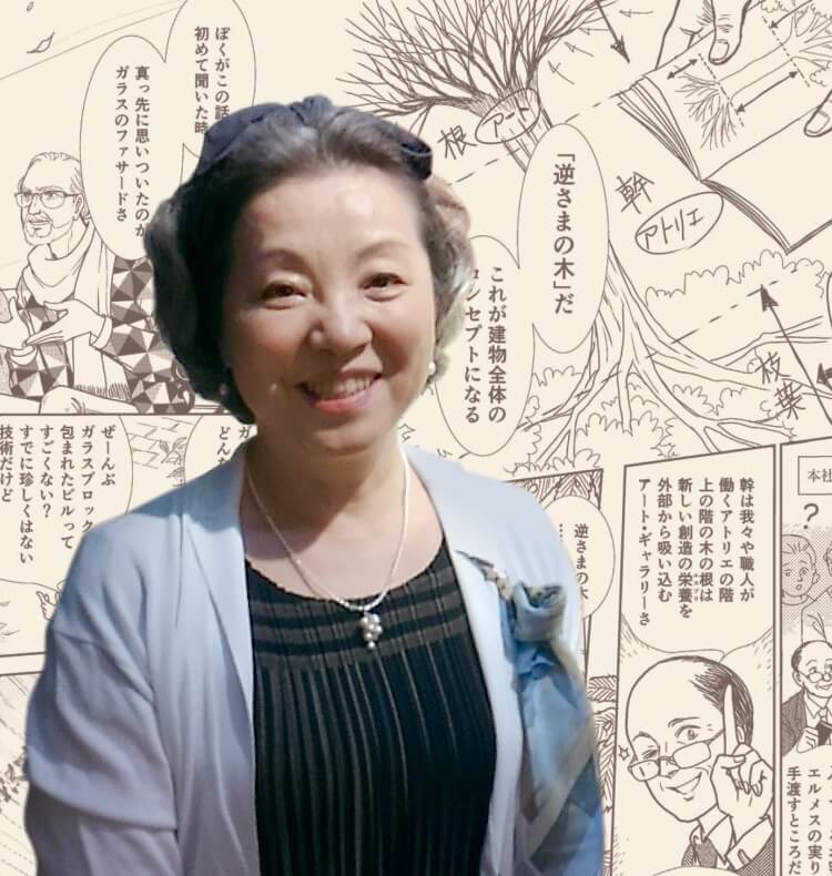 私は漫画家です。主にマンガのコマ割りの中でたくさんのドローイングをしてきました。画業は50年を超えます。故ジャン=ルイ・デュマ氏のご希望でエルメスの社史をマンガ化することになったとき、お引き受けしたのがエルメスとのお付き合いの始まりです。その仕事は、以前に経験したことがないような驚くべきもので、たくさんの発見があり、エルメスが職人の手によって生み出されるドローイングをいかに大事にしているかを知りました。