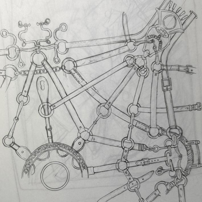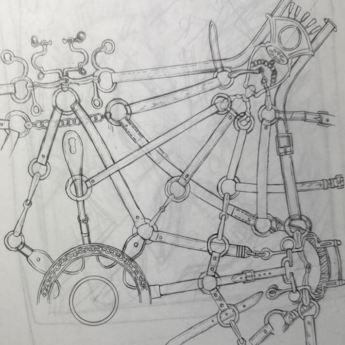 デザインをはじめるきっかけのようなものだと思います。デザインを考える際に、自分が思い描いたイメージ、アイデア、もしくはそのストーリーなどを形にするのにドローイングを描きはじめます。エルメスであれば、ミュゼにあるアイテムを模写したりとか、思いのまま落書きのように描いたものを、自分で見直して、イマジネーションを広げて、描くべきものを発見します。ドローイングは想像の原点です。すべてはドローイングからはじまっています。想像することそれ自体を、エルメスも僕も大事にしています。