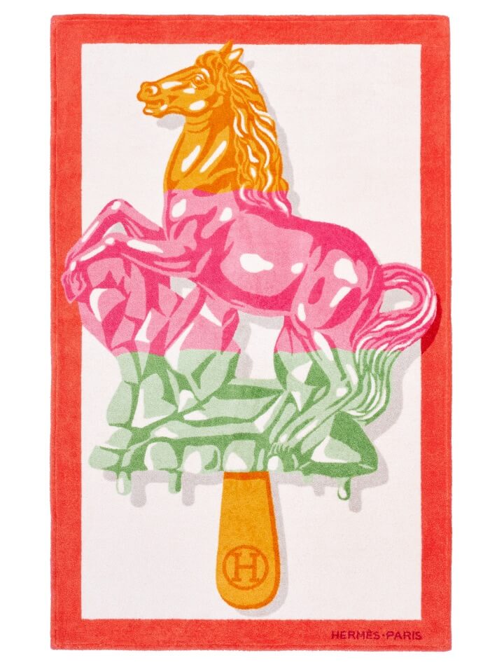 ナポレオン3世がお気に入りだったスルタンという馬がいました。ナポレオン3世がつくらせたというその馬に似せたアイスクリームの型を、あるときミュゼで見つけました。その話が面白かったので、この型で実際にアイスをつくったらどうなるんだろう?と思いついたアイデアが、《シュキュラン・シュルタン》というビーチタオルのデザインになりました。日本語にすると「美味しいスルタン」です。